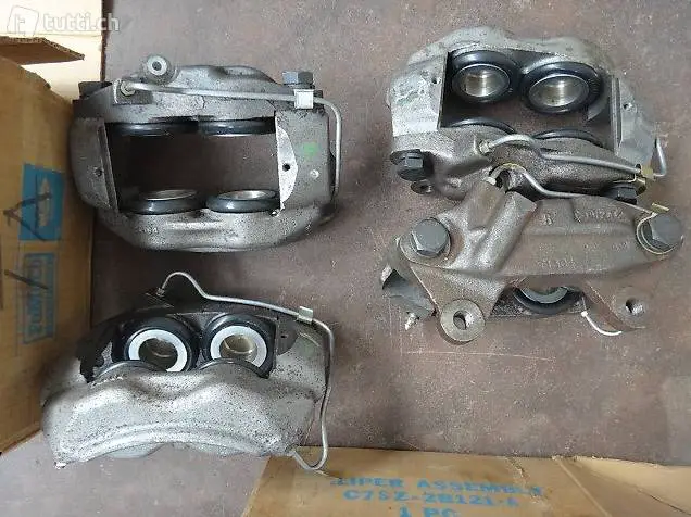 Verkaufe 1 Paar + ORIGINALE FORD 4 KOLBEN Bremszangen vorne, sollten für MUSTANG V8 MODELLE JG.67 -73 passen und ev.auch für andere FORD Modelle . Die Zangen waren noch nie montiert, sie stammen aus einem alten Lagerbestand . 450 .- für 1 Paar . TEL. 079 - 330 59 12