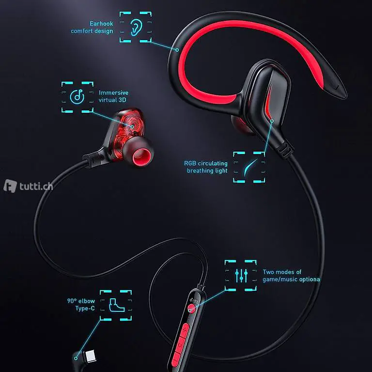 Baseus GAMO C18 Typ C Gaming Ohrhörer mit RGB Licht Ohrbügel Verkabelte In Ear Bass Stereo Ohrhörer für PS4 PC Computer Gamer