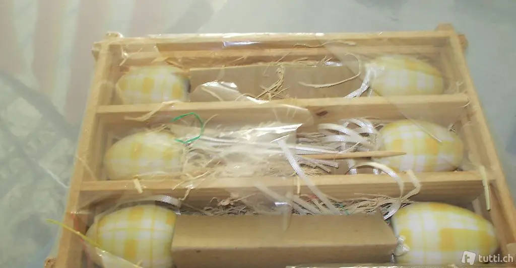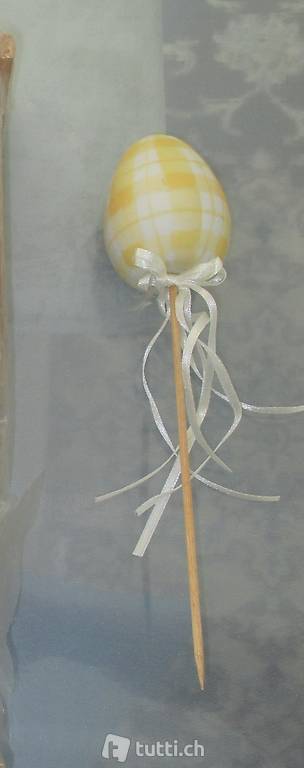 Hier ist eine Ostereier Set zu Ergänzung Ihre Tisch-Dekorationen. Die Eier sind aus Gips, wunderschön verziert, mit einem grossen Holzstocher und mit einer Masche umgebunden. Eine tolle Ergänzung zur Ihren Oster-Deko!