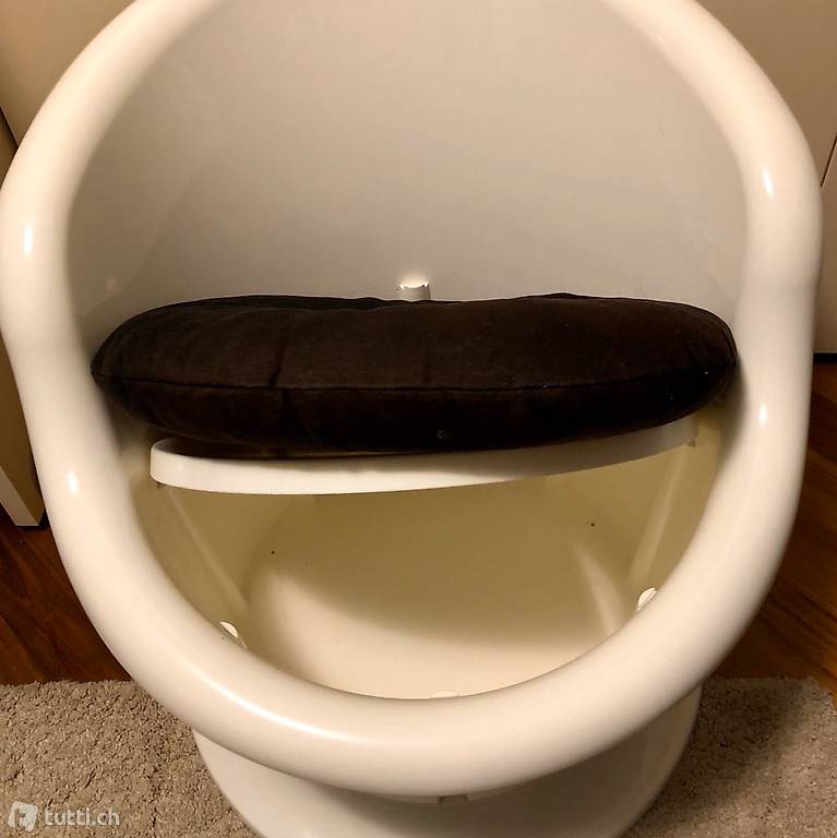 Vendo poltrona Ikea in plastica colore bianco con cuscino nero e pratico vano contenitore sotto la seduta. Ottimo stato