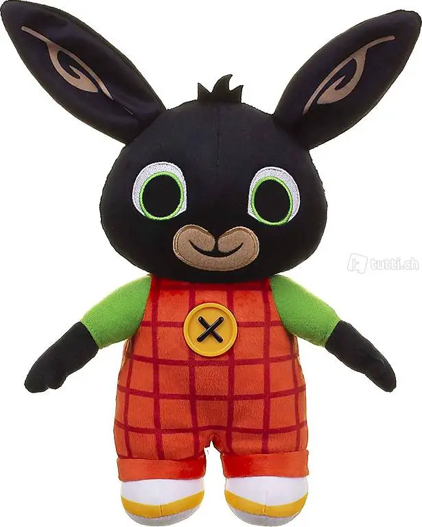 Plüschtier hat fein gestickte Gesichtszüge und superweiche Stoffe. Bing trägt seine ikonische rot karierte