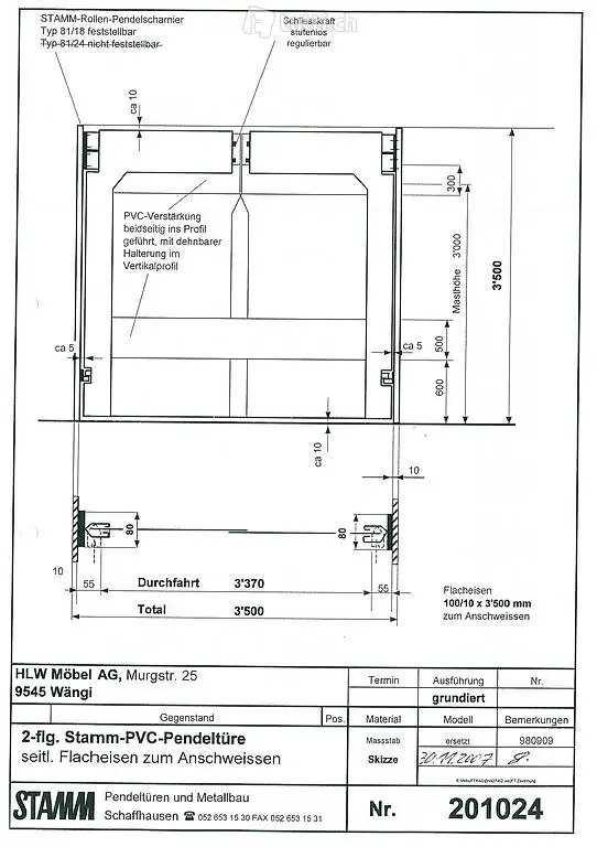 Abzugeben robustes Pendeltor STAMM, aus PVC gut durchsichtig (Gegenverkehr sichtbar) , 2flüglig. Aus Industriehalle.