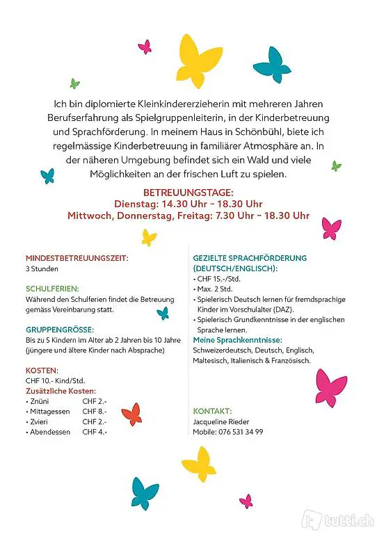 Ich biete regelmässige Kinderbetreuung in Schönbühl in meinem