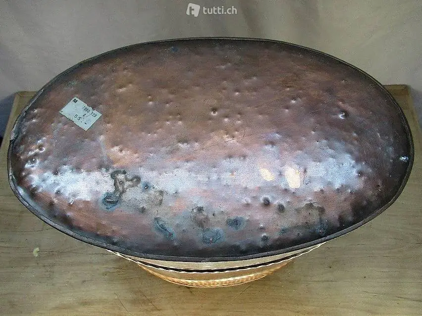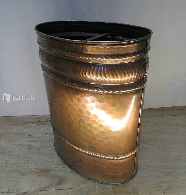 Schöner älterer Kupfereimer in guten Zustand in Form eines alten Milcheimers. Kann als Schirmständer oder Bodenvase verwendet werden. Masse ca. 31 x 19 x 39 cm. Besichtigung und Abholung bei Flums Antik oder Lieferung / Versand 11 Franken.