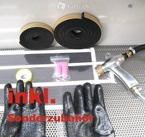 Strahlkabine mit integrierter Absaugung garantiert beste Sicht und Schmutzabsaugung