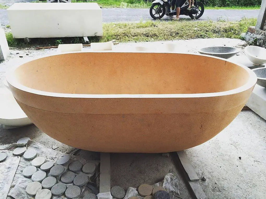 Diese Wanne wird in Bali von Hand aus Terrazzo Stein mit Zement gemischt gefertigt