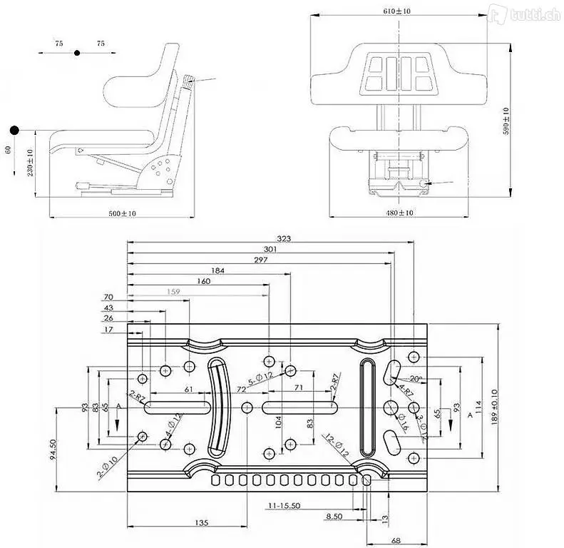 mit stabiler Rückenlehne / Trägerplatte und Längseinstellung bis 150mm Stellweg.