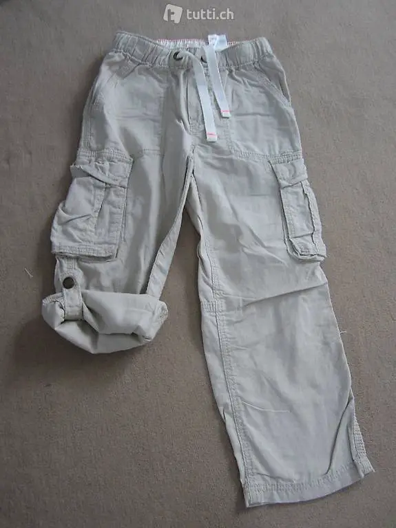 Man kann die Hose hochkrempeln und mit einem Druckknopf befestigen.
