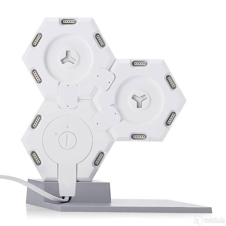 Das Set beinhaltet einen Hauptcontroller, drei Module, zwei Verbindungsstücke sowie einen Sockel aus
