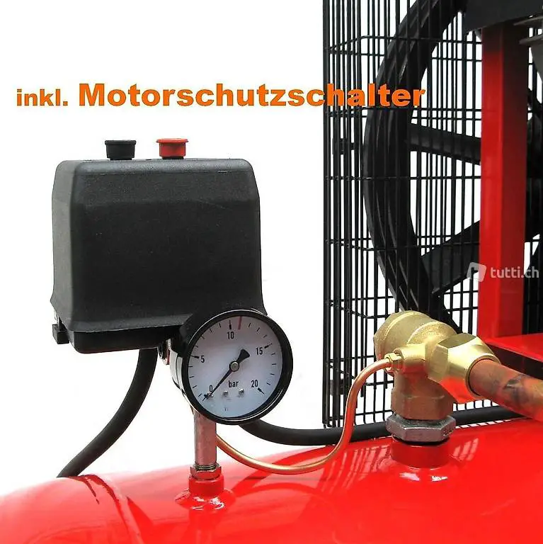 Absperrhahn, Sicherheitsventil, Kondensatablassventil und Membran-Druckschalter mit integrierter Anlaufentlastung für problemlosen Kaltstart. Zusätzlich ist jede Anlage mit Motorschutz zur Überlastabschaltung versehen.