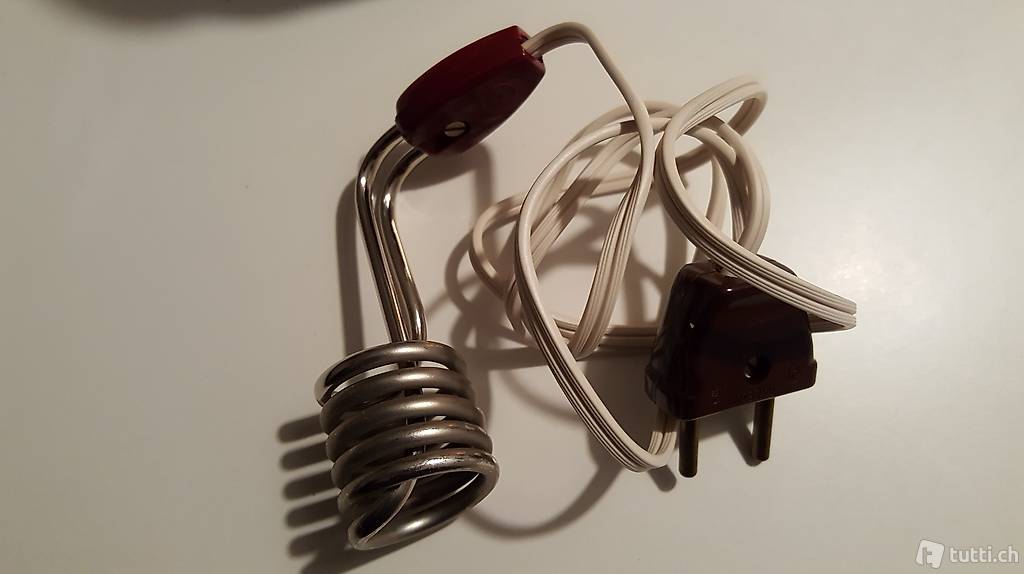 antiker Tauchsieder Reisesieder Wasserkocher m. Glas, Etui