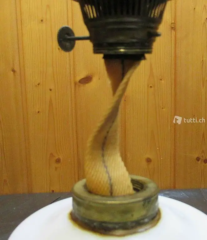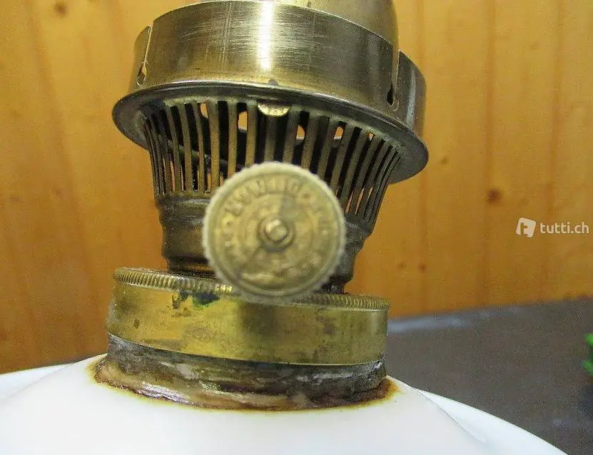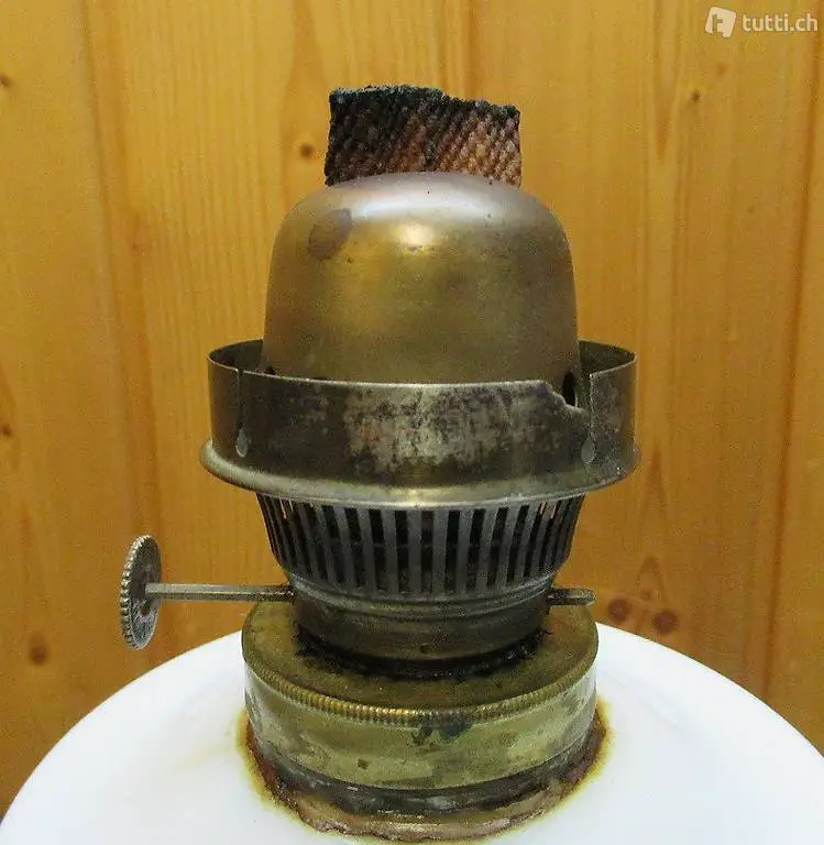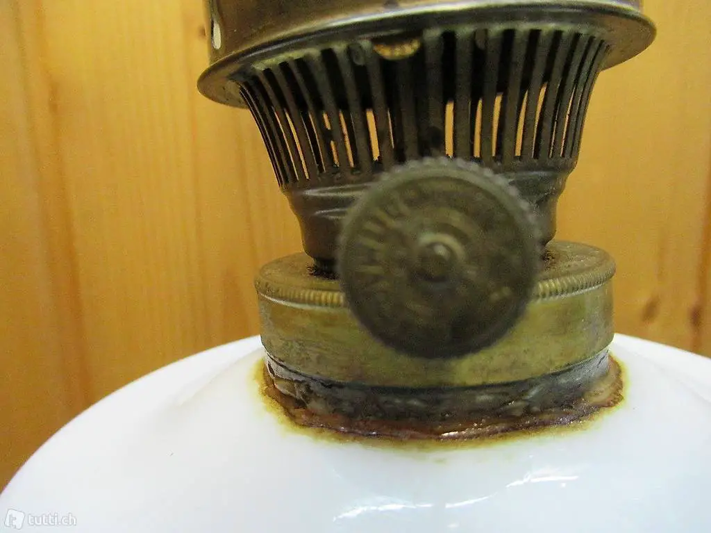 Porzellan-Fuss und einen Brenner aus Messing in einem altersbedingten aber gutem Zustand. Alter, Ende 19.Jahrhundert. Docht noch ausreichend vorhanden. Benutzter und ungereinigter Zustand. Gesamt-Höhe 46 cm. Besichtigung und Abholung bei Flums Antik oder Lieferung / Versand 11 Franken.
