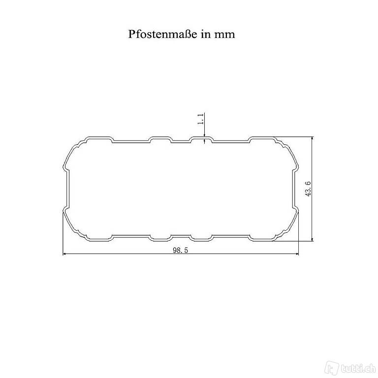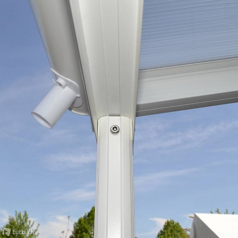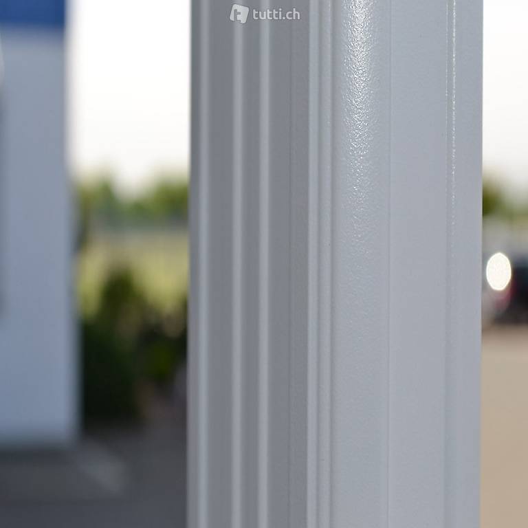- Pfosten, Pfetten, Sparren: Pulverbeschichtetes Aluminium in 1,1 mm Materialstärke
