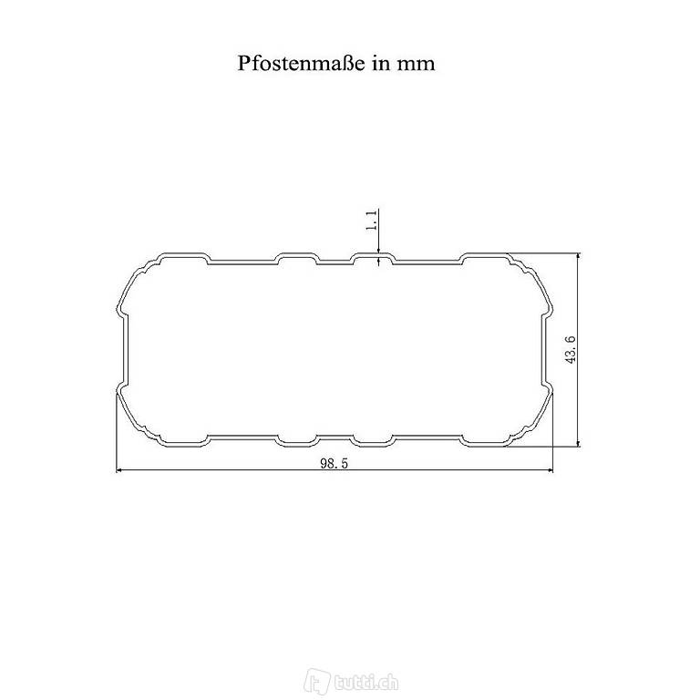 - Pfosten, Pfetten, Sparren: Pulverbeschichtetes Aluminium in 1,1 mm Materialstärke