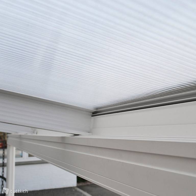 - Doppelsteg-Platten: hochtransparentes Polycarbonat mit UV-Schutzschicht