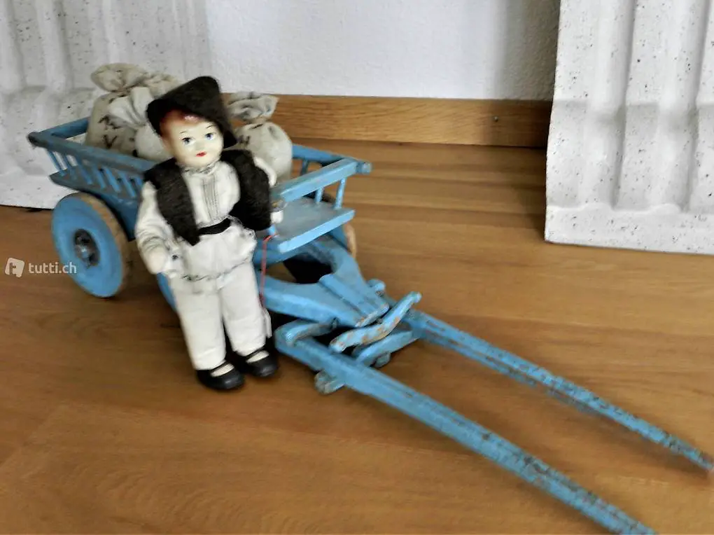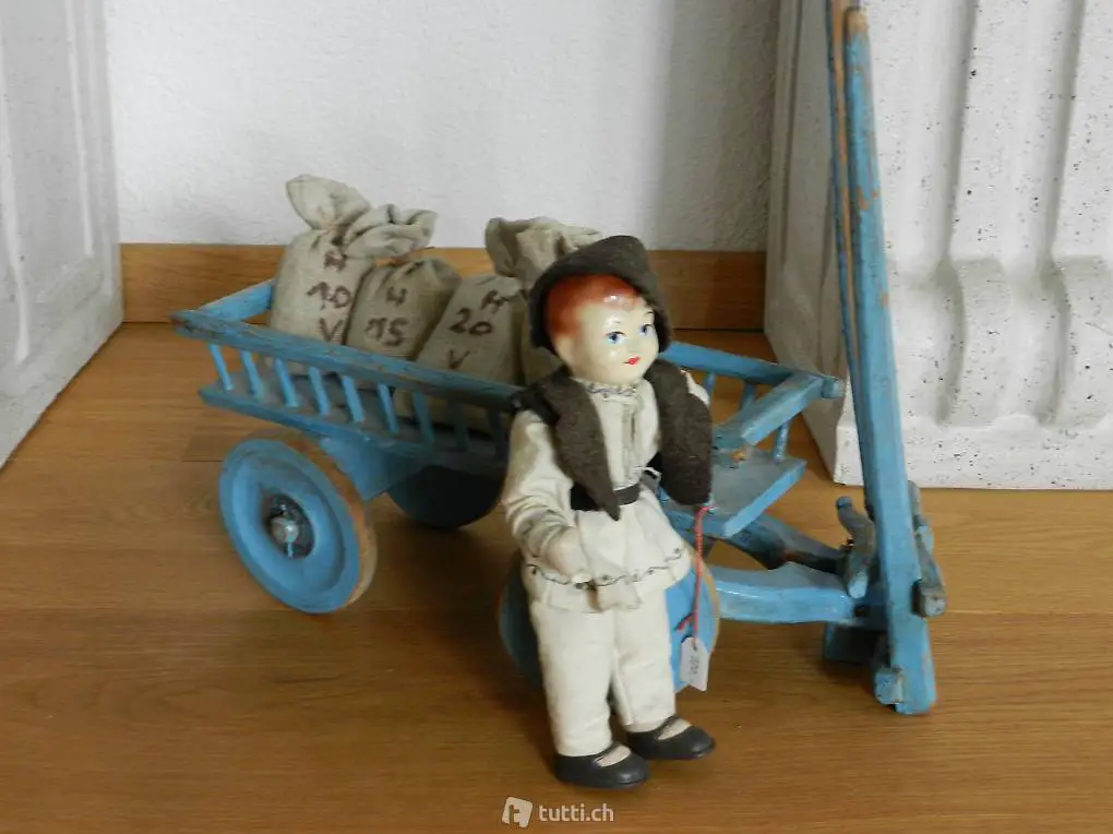" Holzwagen beladen mit 4 "Mehlsäcken" Guter gebrauchter Zustand. (Preis mit
