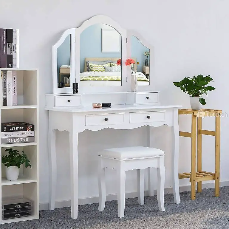 Klassisches und elegantes Aussehen: Das Ganze ist weiss und die Beschichtung ist fein. Der Schminktisch sieht elegant und schön aus. Es kann als