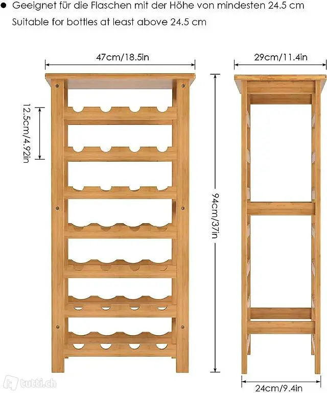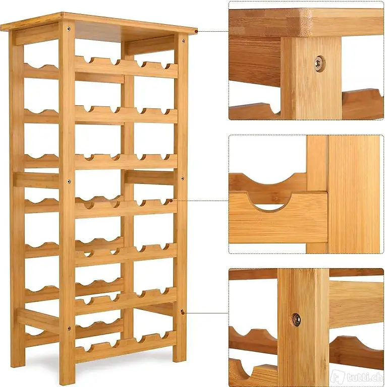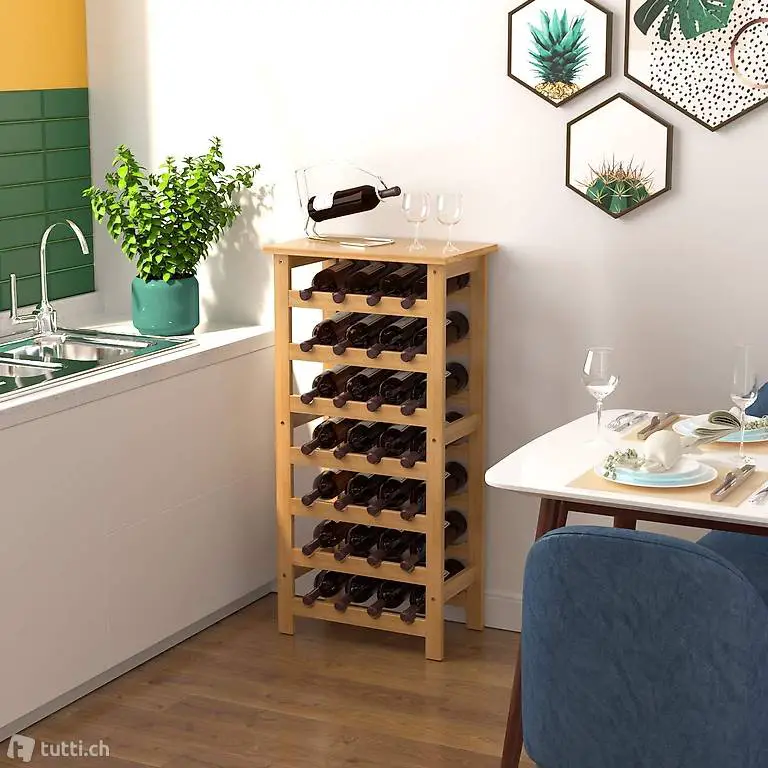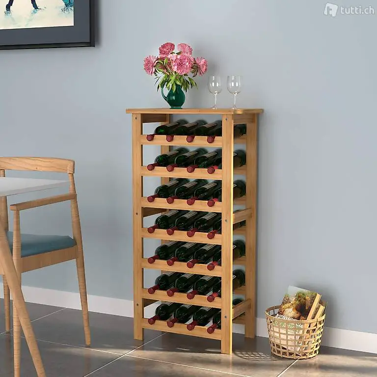 Bambus Weinregal für 28 Flaschen mit Ablage