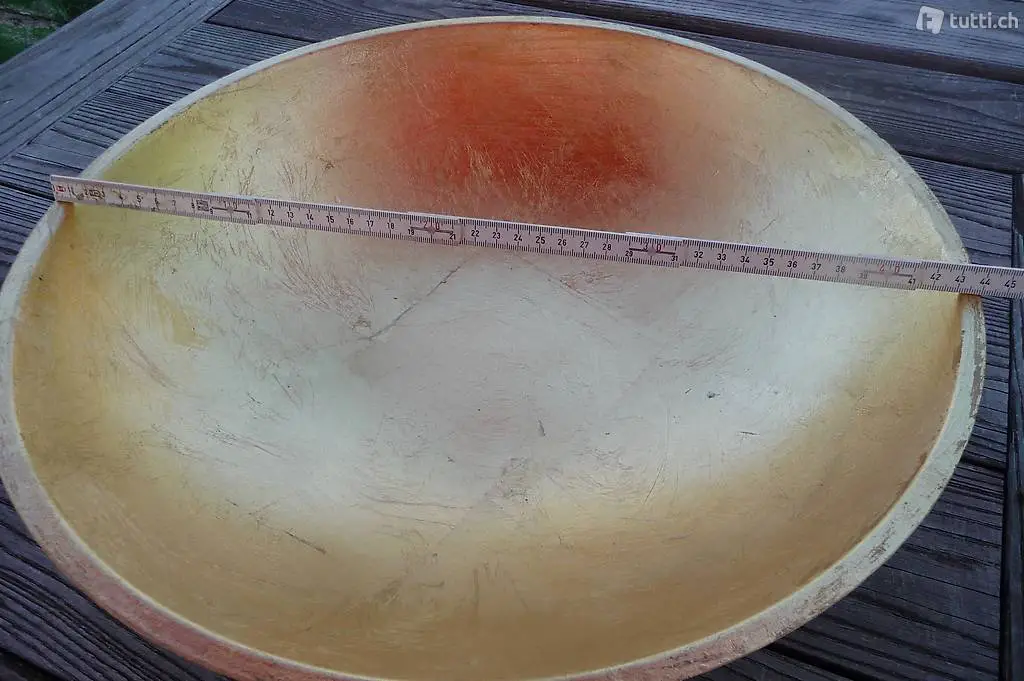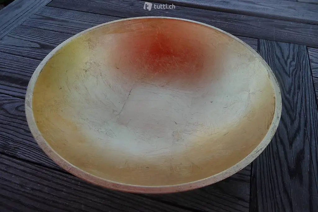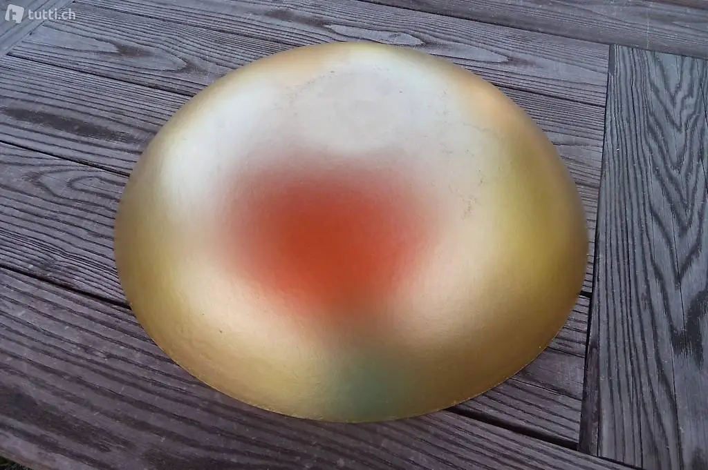 Schale, gross, Durchmesser 44 cm, ca. 1,2 kg schwer. Aussen goldfarbig, innen "vergoldet". Gebraucht.