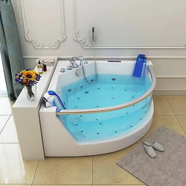 Unsere Wannen haben dabei mit 3 mm eine besonders dicke Acrylschicht. Dadurch speichern Sie Wärme besser und fühlen sich nicht so kalt wie normale Wannen an. Im Vergleich mit Emaille sind sie ein klein wenig kratzempfindlicher. Grosser Vorteil ist allerdings, dass sie sich mit Reparatursets wunderbar beseitigen lassen. Die besonders dichte Struktur des Sanitäracryls ist praktisch porenfrei, weshalb Kalk, Seifenreste oder auch Bakterien keine Chance haben, sich festzusetzen. Ein hygienischer und leicht zu reinigender Whirlpool weiss natürlich jeder zu schätzen. Und zu guter Letzt möchten wir auch noch die rutschfeste Oberfläche erwähnen, die schlag-, bruch- und stossfest ist.