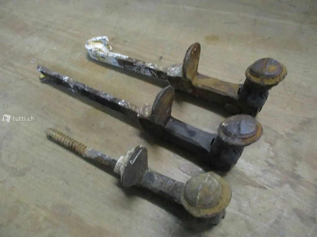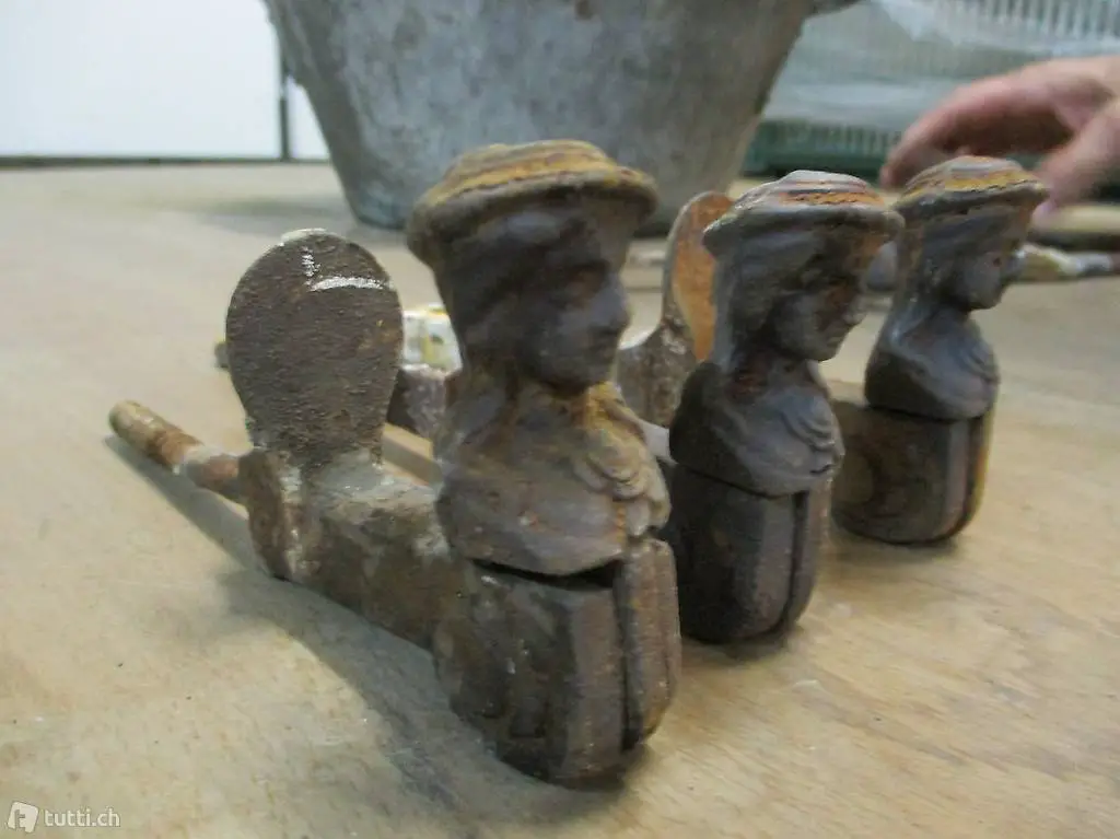Ca. 20x Fensterladen-Stopper / Fensterladen-Halter / Fensterladen-Rückhalter / Halterung / Männchen / Figur / Mannli / Mandeli. Frauen-Figur / Büste mit Hut. Aus Gusseisen. Wunderschöne Rarität aus Rückbau von