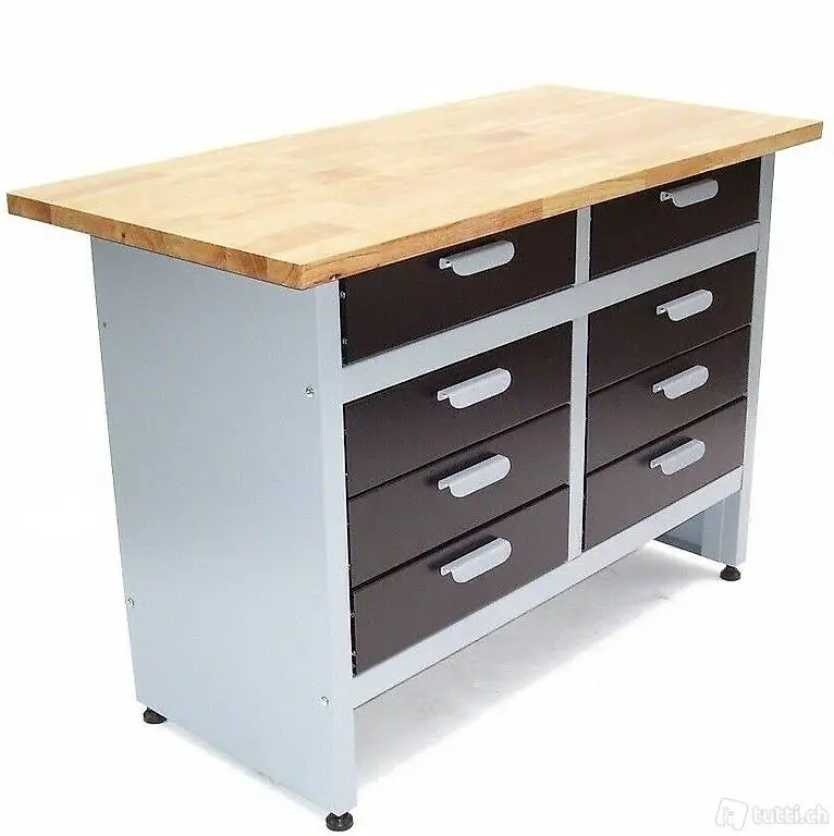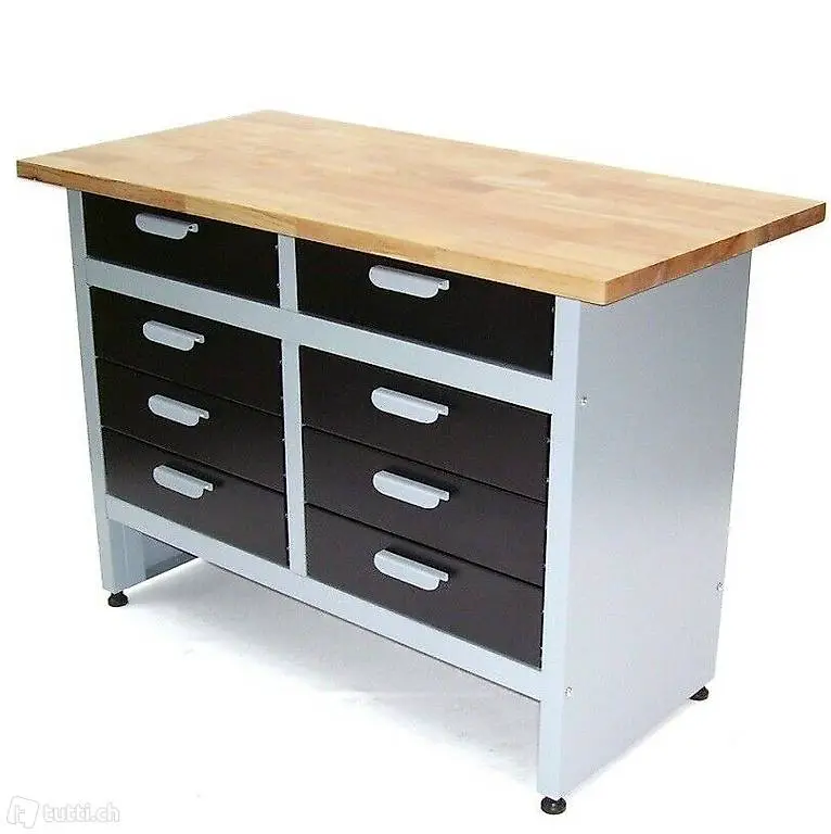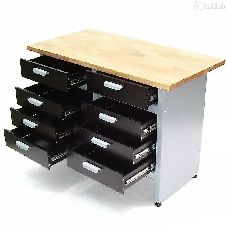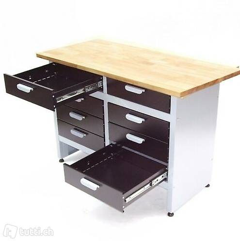 - robuste Werkbank mit 8 Schubladen und Staufach inkl. Stäbchenverleimte