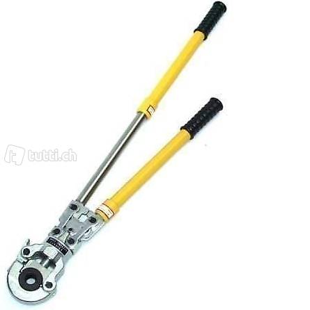 Mit der Handpresszange lässt sich Verbund- und Kupferrohr von 16 mm - 32 mm mit Hilfe der passenden Fittinge verpressen.