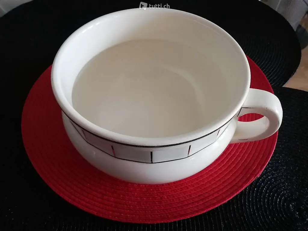 Sehr guter Zustand, mit Goldlinien-Dekor und Henkel. Eignet sich auch sehr