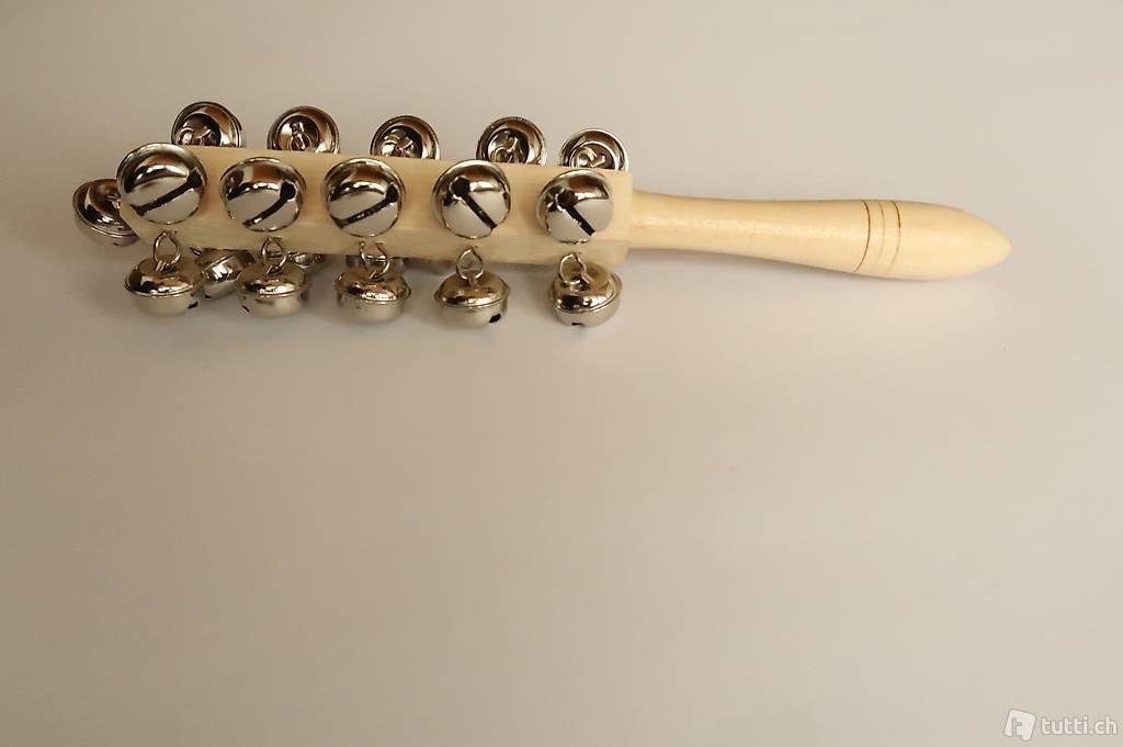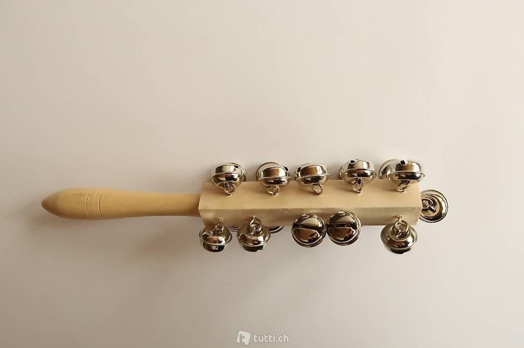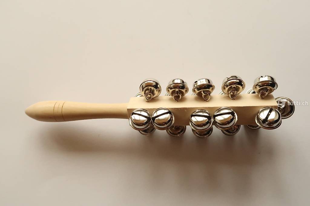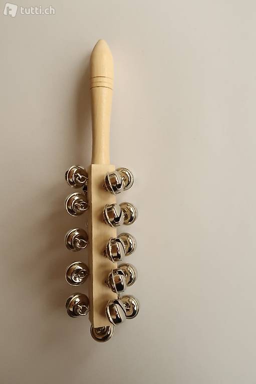 Schellenstab / Glöckchenstab / Schellenrassel mit 21 lauten, silbrigen und 20mm grossen Glöckchen.