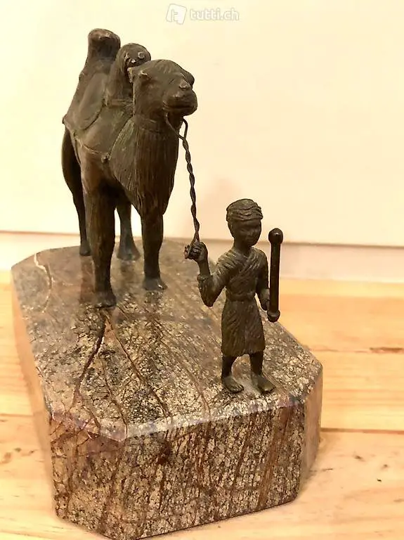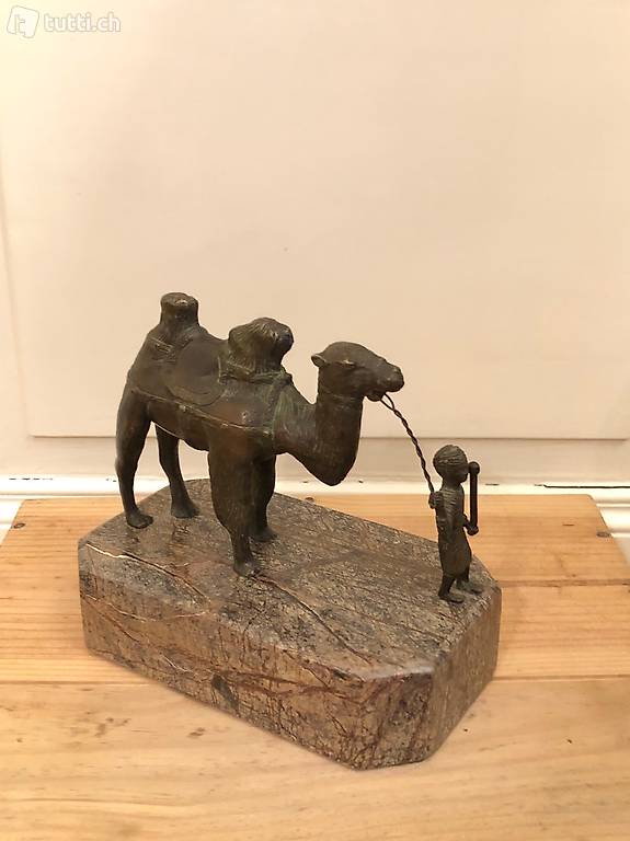 Kamel mit Araber, vermutlich Bronze auf mehrfarbigem