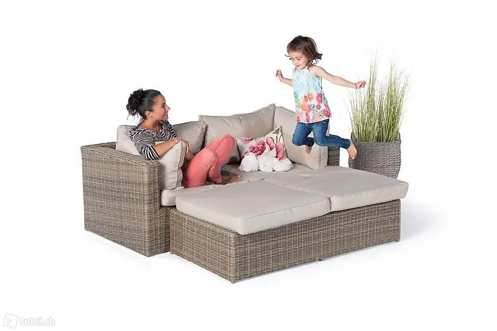 Die schöne Rattan Lounge ist sehr vielseitig und bietet viel Gestaltungsfreiraum. Der verstellbare