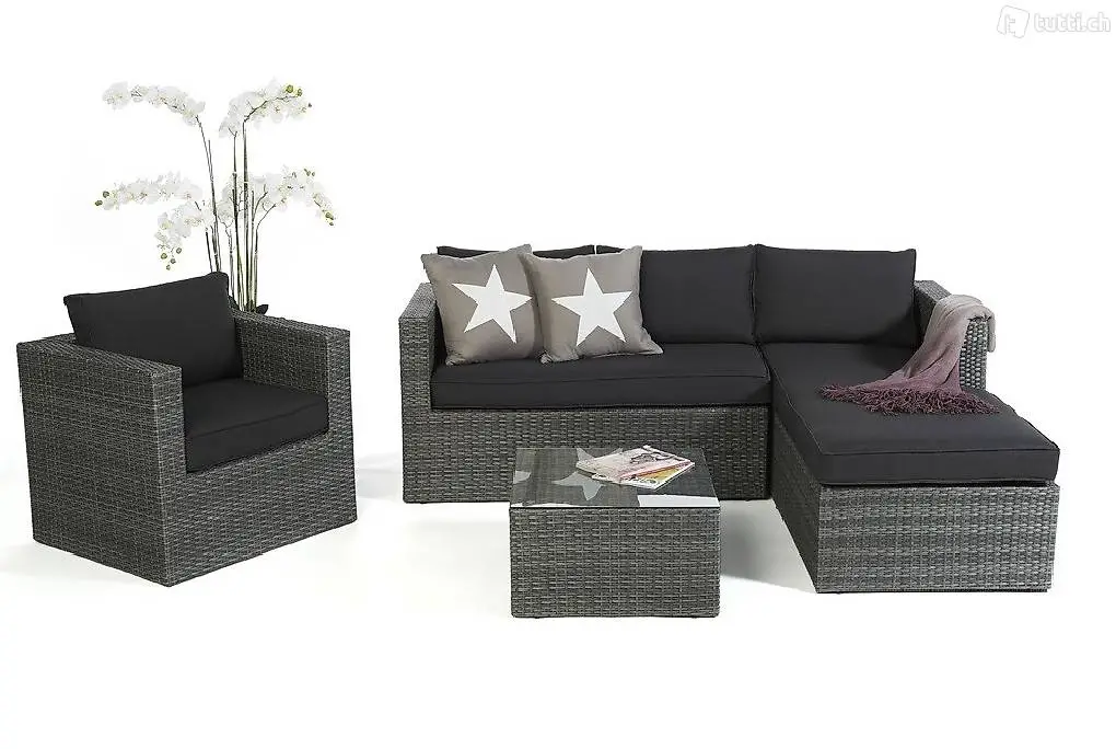 Gartenmöbel. Die komfortable Garten Lounge bietet Ihrer Familie sowie Freunden einen gemütlichen Platz für sommerliche Stunden im Garten. Für den optimalen Komfort sorgen die bequemen