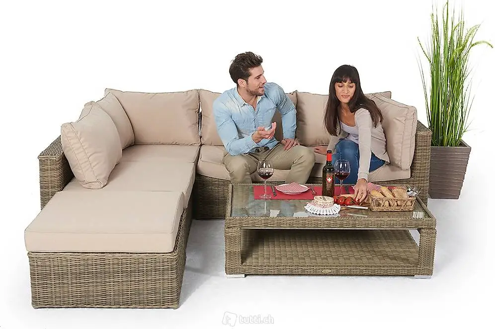 Geniessen Sie den Sommer mit schönen Rattan Gartenmöbel. Die komfortable Rattan Lounge bietet Ihrer Familie sowie Freunden einen gemütlichen Platz für sommerliche Stunden im Garten.