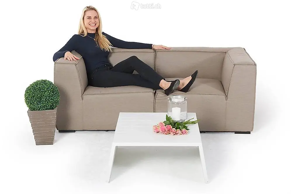 Ce tissu s'entretient très facilement. Le lounge confortable est rempli d'une mousse à séchage rapide et peut rester à découvert à l'extérieur.