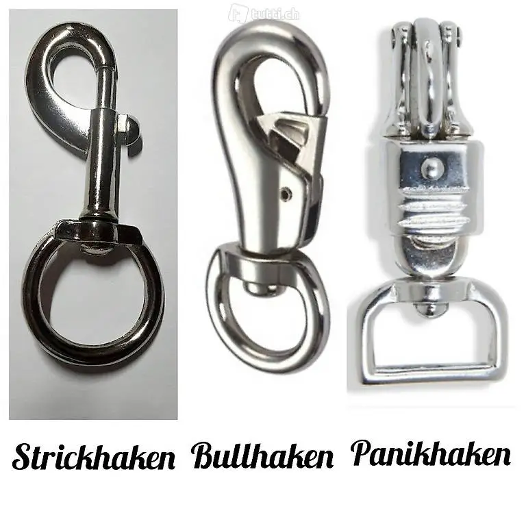 Verschiedene Karabiner zur Auswahl. (Bullhaken, Panikhaken, Strickkarabiner)