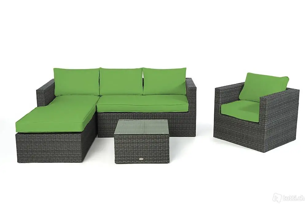 Rattan Garten Loungegruppe Galicia lädt ein, Sommertage im Garten zu geniessen. Das Gartenmöbelset wurde aus wetterbeständigem Rattan Geflecht hergestellt und der Aluminiumrahmen ist pulverbeschichtet.