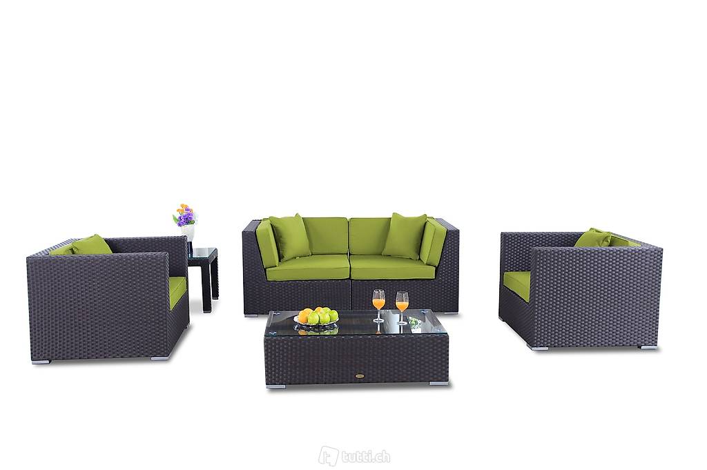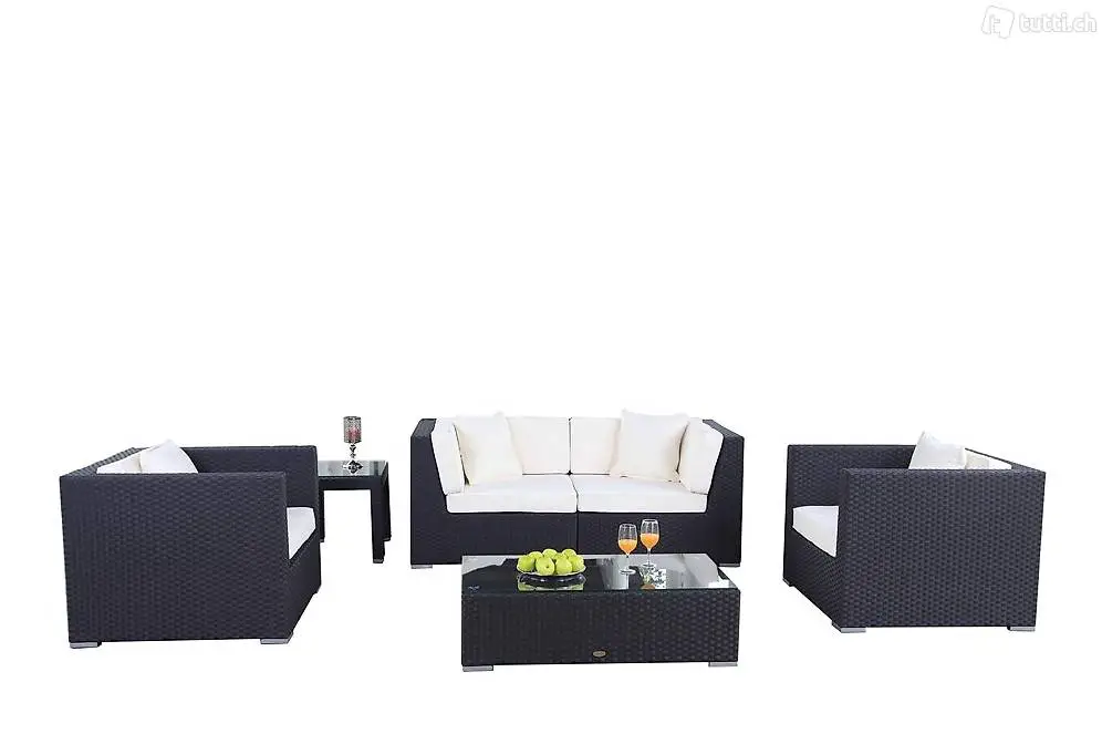 Polsterbezüge in einer anderen Farbe wie Schwarz, sowie weitere Sitzlounges um die Rattan Lounge zu vergrössern, kann dazu bestellt werden.