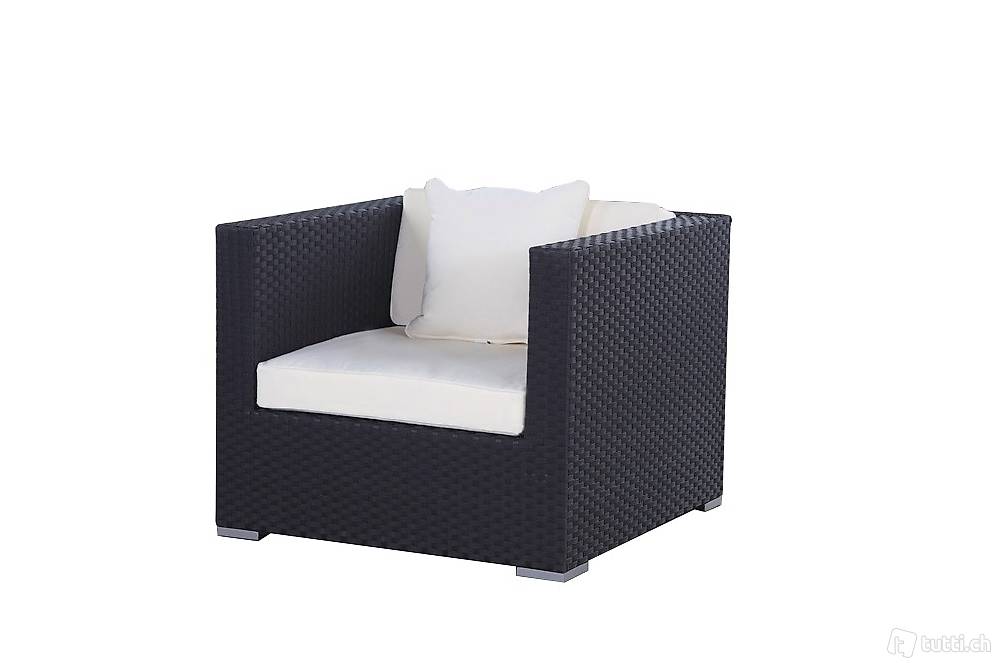 1 x Rattan Mittelteil schwarz mit Polster beige
