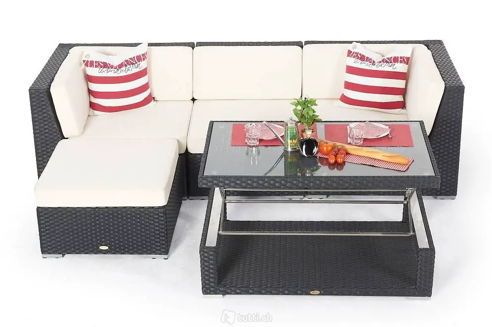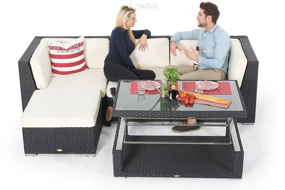 Gartenlounge mit Esstisch: Total im Trend sind Rattan Gartenmöbel mit Funktion. Diese machen Sinn und bieten viele Möglichkeiten. Haben Sie zu wenig Platz auf der Terrasse oder auf dem Balkon um eine Rattan Lounge und eine separate Essgruppe zu kaufen? Hier bieten sich die Rattan Lounge Sets optimal an.