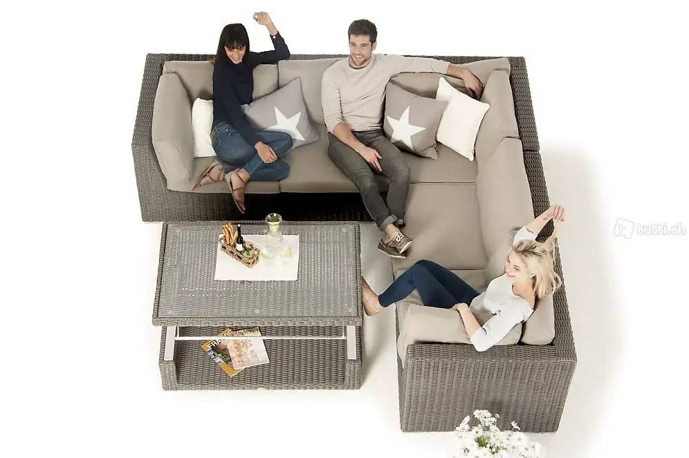 Bei schönen Sommertagen die uns einladen draussen unsere Mahlzeit einzunehmen, kann der verstellbare Lounge Tisch einfach hochgeklappt werden, der Esstisch hat somit die ideale Höhe um gemütlich zu essen. Die Trendmöbel bringen Gemütlichkeit und purer Genuss im eigenen Garten.