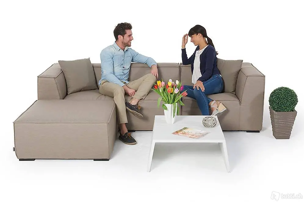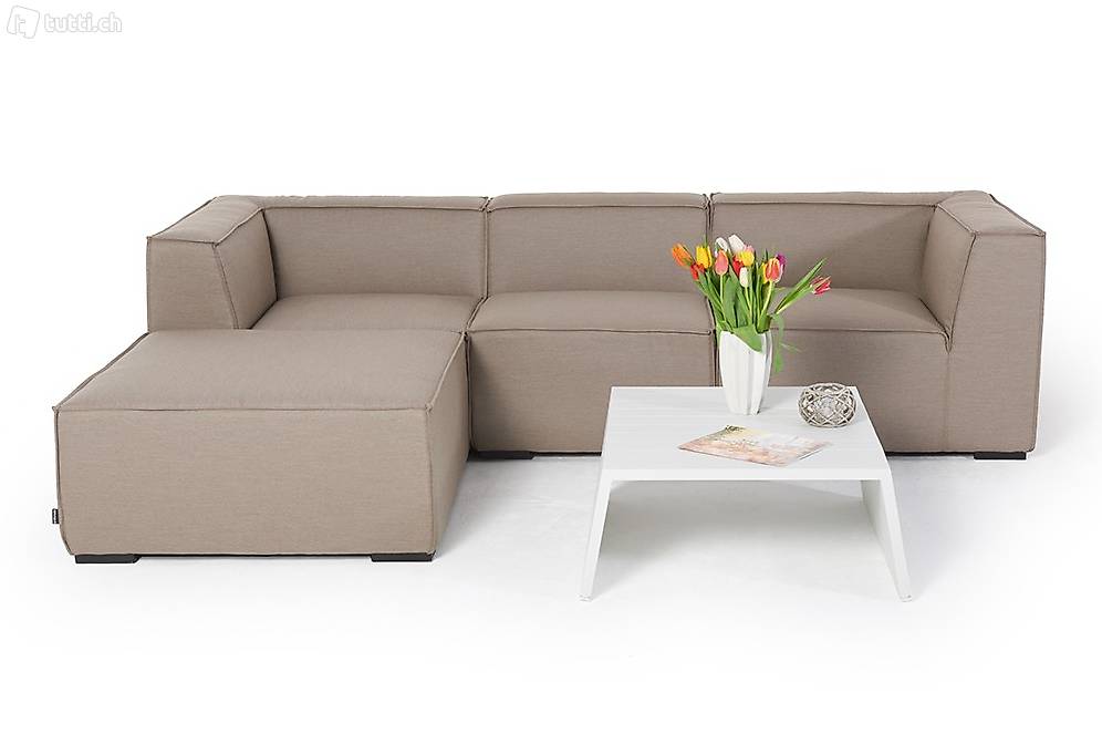 Verzaubern Sie Ihren Garten in eine Wohlfühloase mit dieser sandbraunen Gartenlounge. Die Mira Outdoor Lounge mit dem hochwertigem Sunbrella Outdoorstoff. Das wetterfeste Material ist ideal für das Schweizer Wetter.