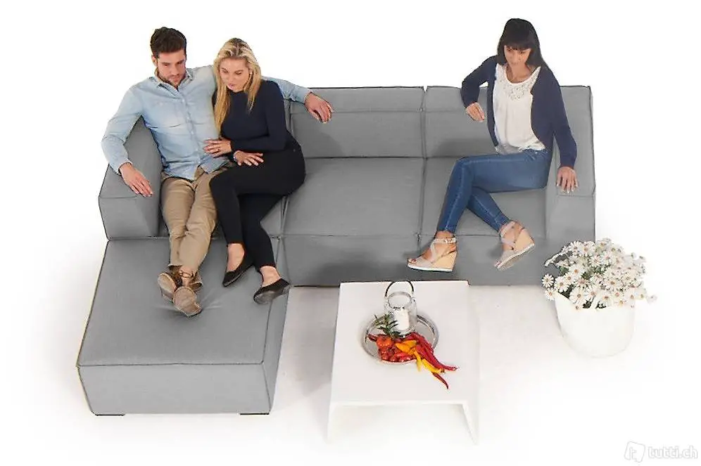 abweisend und UV beständig. Die Einzel-Elemente lassen sich durch das montierte Stecksystem einfach zusammen verbinden, durch dies ist die Lounge rutschfest.