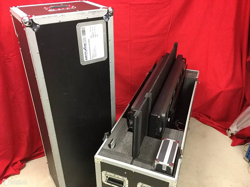 Case auf Rollen mit zwei Plasma Bildschirmen 42 Zoll