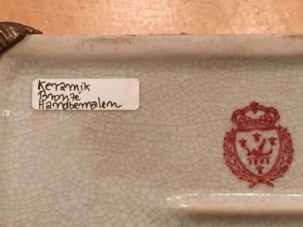 aus Keramik mit pompösen Bronze Beschlägen. wundervolles Prunkstück
