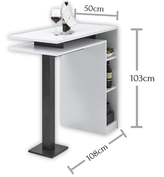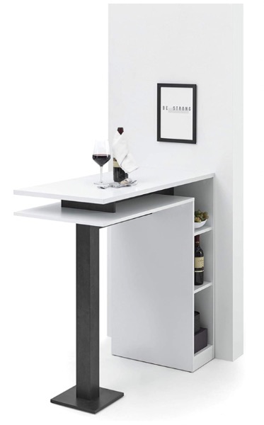 Ideal für kleinere Wohnungen mit begrenztem Platzangebot oder als Raumteiler zwischen Küche und Wohnzimmer. Der praktische Bartisch bietet viel Platz auf engstem Raum.