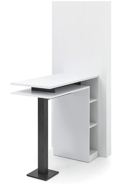 Ideal für kleinere Wohnungen mit begrenztem Platzangebot oder als Raumteiler zwischen Küche und Wohnzimmer. Das seitliche Regal bietet viel Platz für Dinge aller Art. Die Ablage unter der