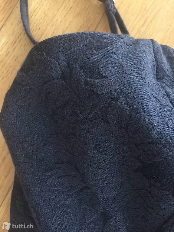neu und ungetragen, schönes schwarzes Kleid mit Blumenstoff, elegant, Gr XS/ S. Träger abnehmbar, creme weisses Band auch abnehmbar, auch fûr festliche Anlässe geeignet,
