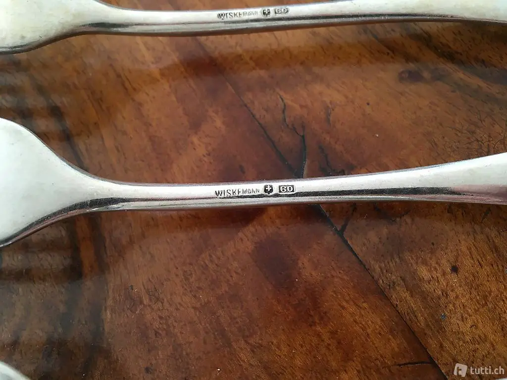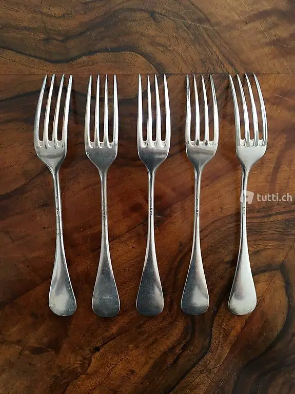 5 x Versilberte vintage Wiskemann Gabeln zu verkaufen. Die Gabeln können in Biel abgeholt werden oder gegen Porto per Post verschickt werden. Anfragen bitte per SMS oder Telefon. Danke!