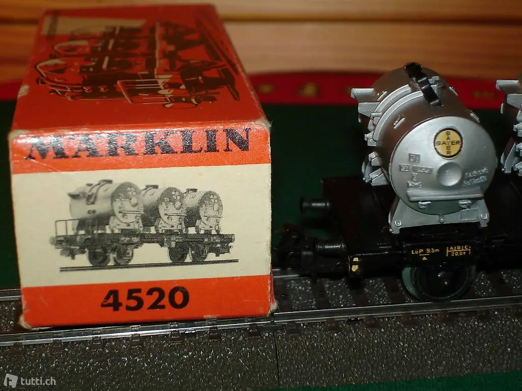 Märklin HO wagon porte-conteneurs chargé de 3 conteneurs en plastique, inscription BAYER