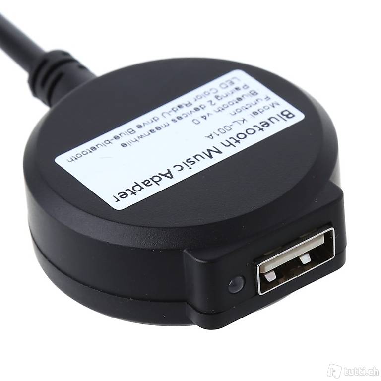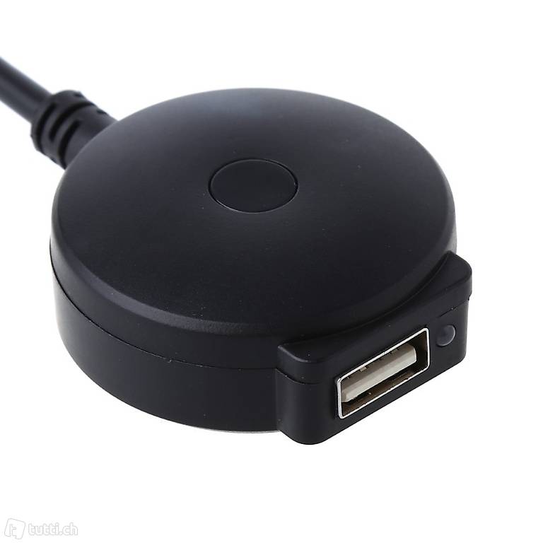 - Wechsel zwischen USB (rote LED) und Bluetooth (blaue LED) mit Button am Adapterkabel